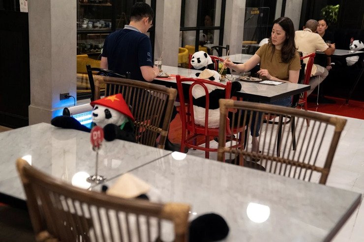 У в’єтнамському ресторані Maison Saigon, що в Бангкоку, розсадили за столики іграшкових панд, щоб обмежити кількість відвідувачів і, водночас, створити для них компанію.