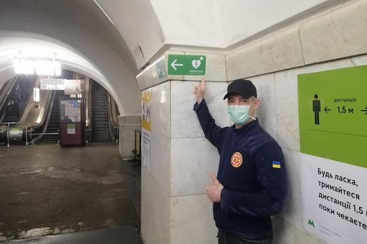 На станціях Київського метрополітену, який відкрився 25 травня після карантину, з’явилися автоматичні зовнішні дефібрилятори. Про це повідомляє тренінгова компанія «Центр Спеціальної Підготовки».