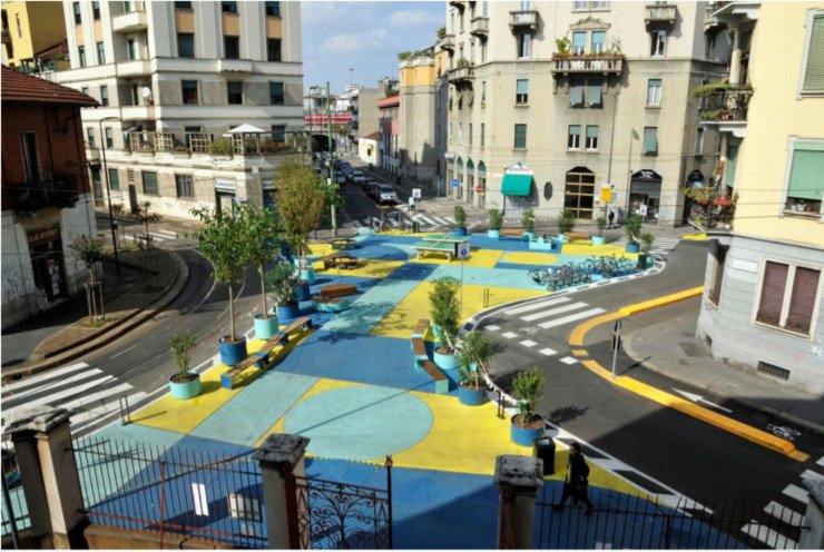 У 2018 році в Мілані представили проєкт Piazze Aperte (Відкриті площі), в якому митці та архітектори експериментують з тактичним урбанізмом, щоб створити нові громадські простори із зайвих доріг та перехресть.