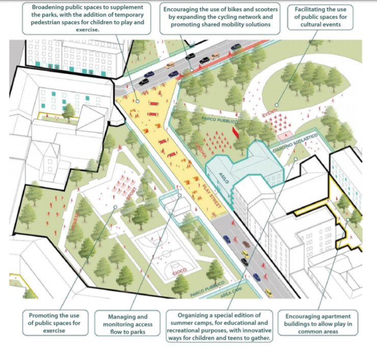 Днями муніципалітет Мілану опублікував свою стратегію розвитку мобільності міста для велосипедистів та пішоходів, що дозволить дотримуватись правил соціального дистанціювання після карантину. Мета плану  пошук нової схеми пересування містом, яка не обмежуватиме людей і водночас зменшить ризики інфікування в період посткарантину.