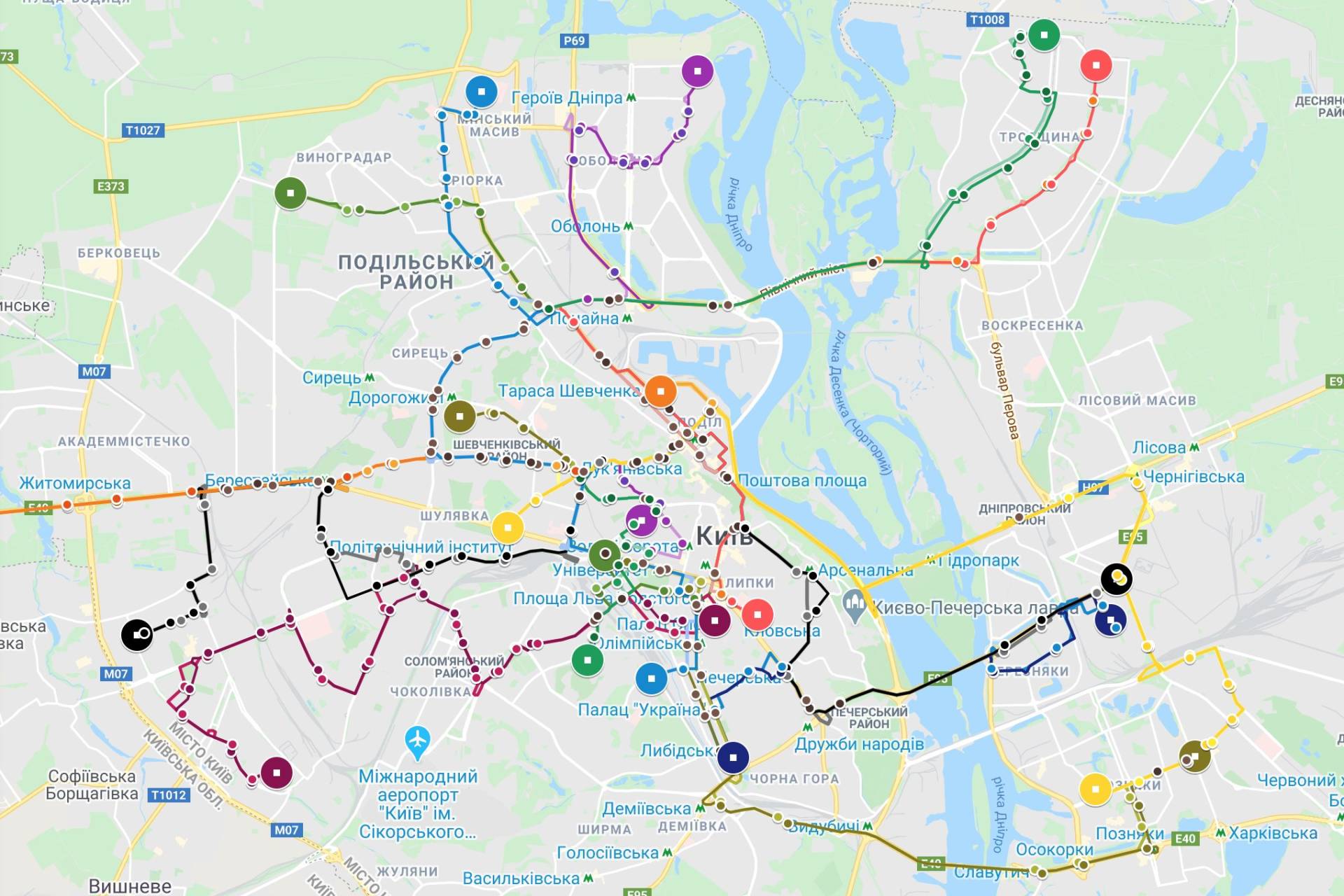 Мапа маршрутів Uber Shuttle станом на початок 2020 року, створена транспортним ентузіастом