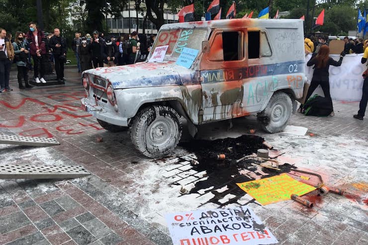 На акції за відставку міністра внутрішніх справ Арсена Авакова, яка проходить під Верховною Радою, чоловік намагався вчинити самоспалення. Поліції вдалося швидко його загасити, повідомляє hromadske.