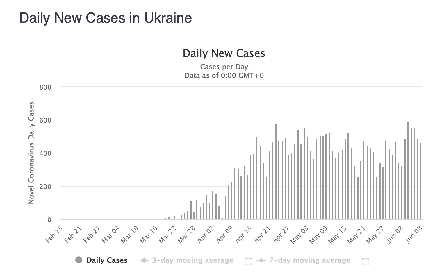 Кількість нових випадків за добу в Україні. Графік: worldometers.info