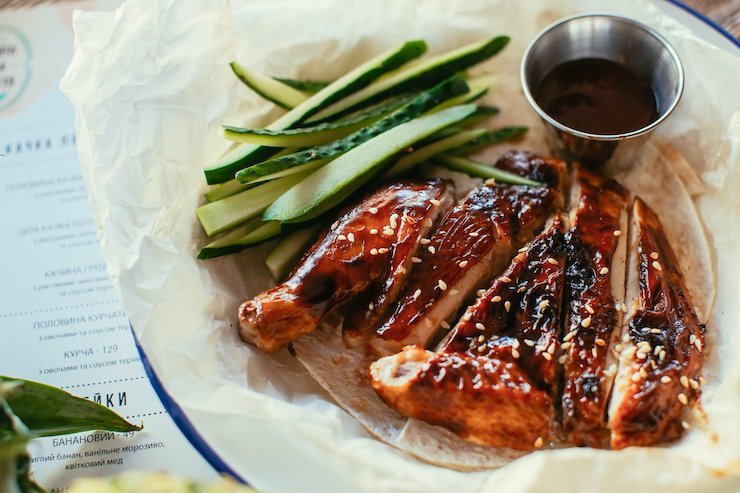 Останній заклад – це новий формат. У «Шашлики, вино та друзі» готують кавказьку кухню. У меню є кілька видів шашлику, хінкалі по 19 гривень, хачапурі, а ще плов із сухофруктами, який подається з овочевим салатом (69 гривень).
