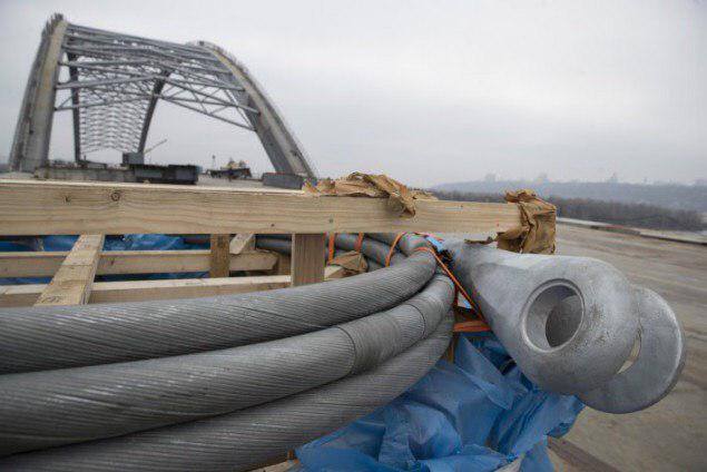 На Подільсько-Воскресенському мосту монтують іржаві троси (фото)