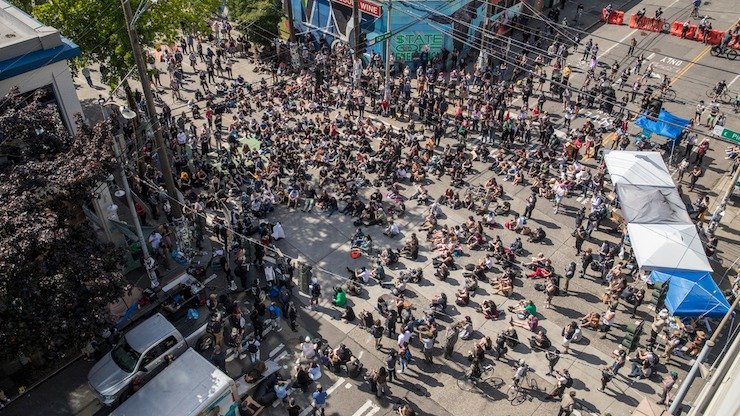 Цього тижня вони захопили центральний квартал та встановили намети, проголосивши територію зоною, вільною від поліції. У ніч проти 10 червня протестувальники влаштували перегляд документального кіно від Netflix «Тринадцята поправка» (“13th”) про расові упередження пенітенціарної системи США.