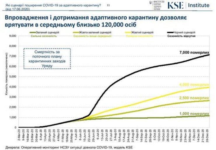 За умови, якщо країна продовжить дотримуватися адаптивного карантину, є чотири варіанти збільшення захворюваності, а відтак і смертності від захворювання.