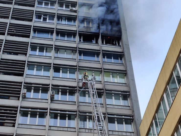 Пожежа виникла в одному з офісів на одинадцятому поверсі. Фото: ДСНС Києва