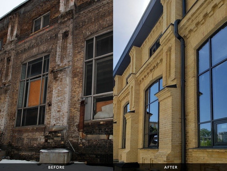 В процесі оновлення команда архітекторів ставила собі за мету відновити історичні фасади до первісного вигляду у частині, що збереглась, розкрити закладені віконні та дверні отвори, та створити єдине стилістичне рішення. Також будівлю вирішили утеплити та замінити старе покриття покрівлі, щоб зменшити навантаження на опорні конструкції, замінити двері та вікна, облаштувати всередині будівлі нові сходи та пристосувати внутрішній простір для потреб коворкінгу.