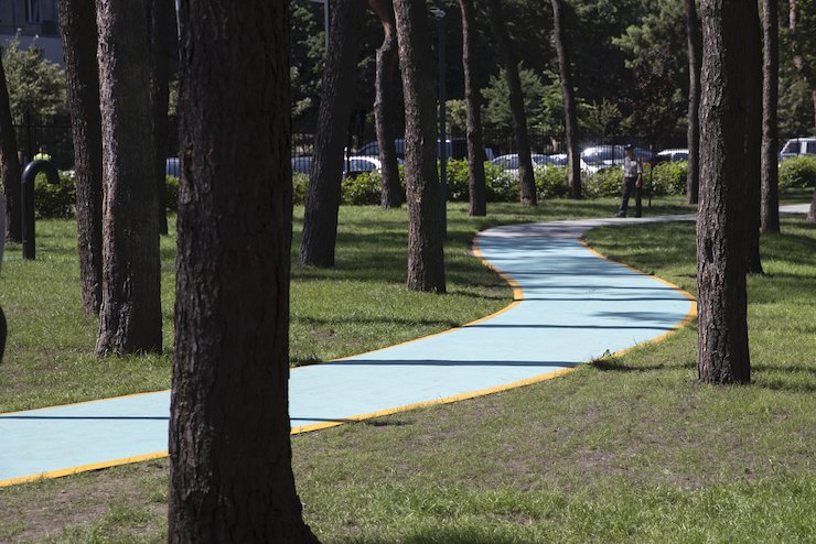 Тоді в парку «Совки» облаштували двокілометрову центральну алею з фібробетону та «сухий» фонтан, який увечері підсвічується. Між деревами – стежки з гравію.