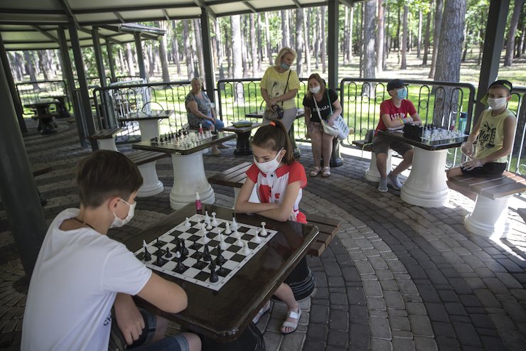 У шаховій альтанці розміщено 20 столів із шахівницями.