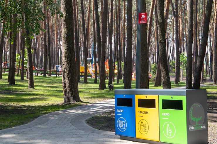 Вхідна група висаджена туями й оздоблена щепою та мармуровою крихтою. У парку також збудували громадську вбиральню, встановили камери відеоспостереження і тривожні кнопки.