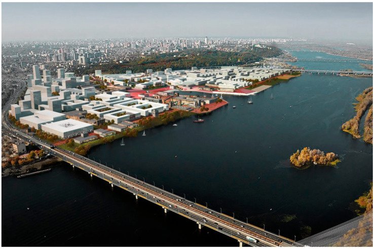 За концепцією, проєкт бюро Zotov&Co так само дозволив би розвантажити центр міста та дати киянам більш зручний доступ до головної річкової артерії країни, яку наразі відмежовує від міста Набережне шосе.