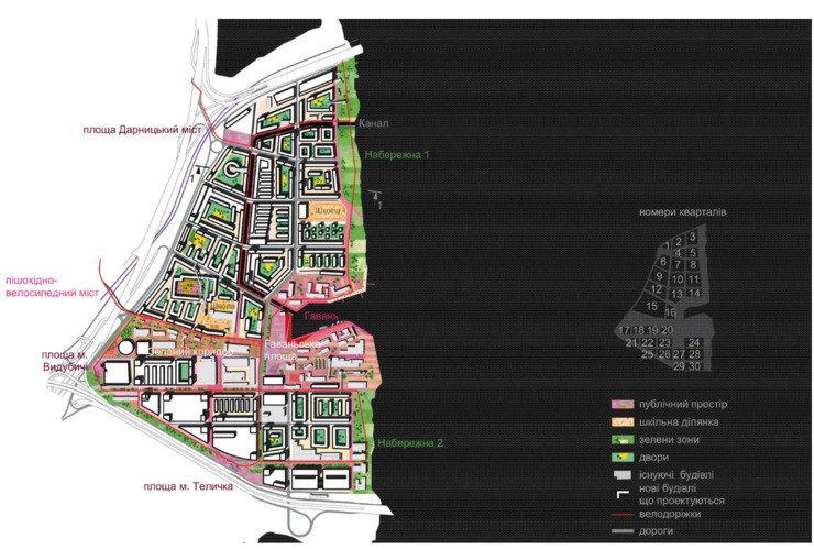 Схема інфраструктури та кварталів проєкту забудови Телички Zotov&Co з сайту бюро