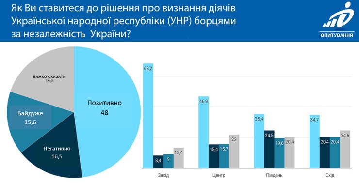 Зазначається, що не визначилися з відповіддю 20%. Позитивне ставлення до визнання діячів УНР висловлюють в усіх регіонах. Щодо балансу серед вікових груп, то серед людей старшого віку більше тих, хто не визначилися з відповіддю на це запитання.