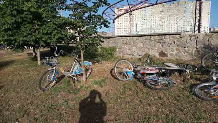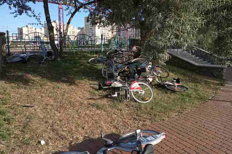 На Троєщині невідомі скинули з висоти 15 прокатних велосипедів (фото)