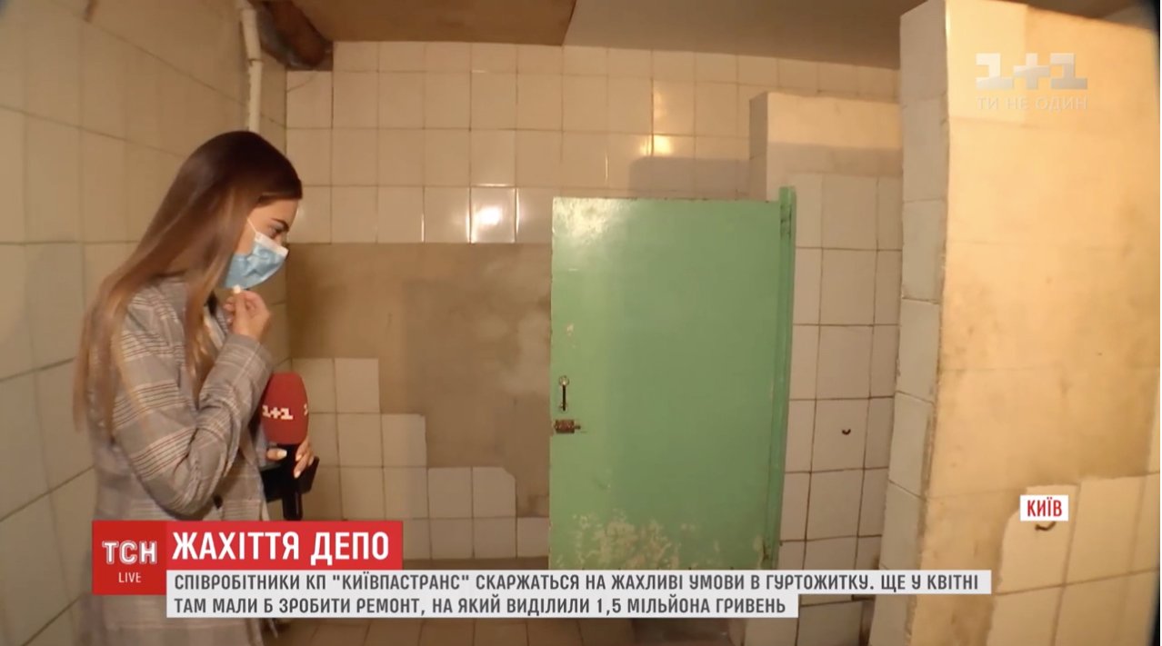 Працівники «Київпастрансу» поскаржилися на умови проживання у гуртожитку Куренівського депо на вулиці Сирецькій, 25. Журналісти ТСН зняли приміщення з грибком на стінах, старими «облупленими» душовими кімнатами та стелею, з якої сиплеться тиньк.