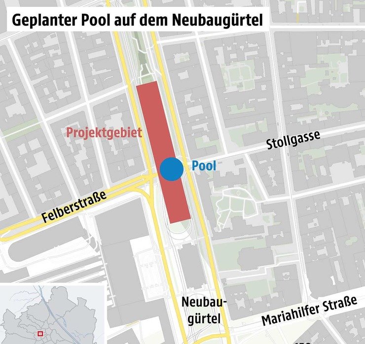 На перехресті між 7 та 15 районами Відня, поблизу вокзалу Westbahnhof, просто неба з’явився тимчасовий парк Gürtelfrische West з басейном та зеленою зоною, повідомляє місцеве видання Kurier. Для цього на кілька тижнів перекрили ділянку вулиці на сім смуг. Вхід до парку безкоштовний.