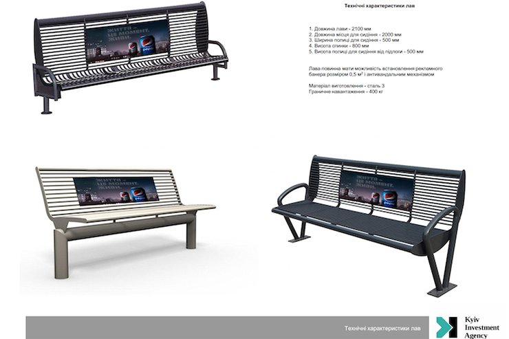 На вулицях Києва встановлять 120 лав із рекламою. Як вони виглядатимуть?