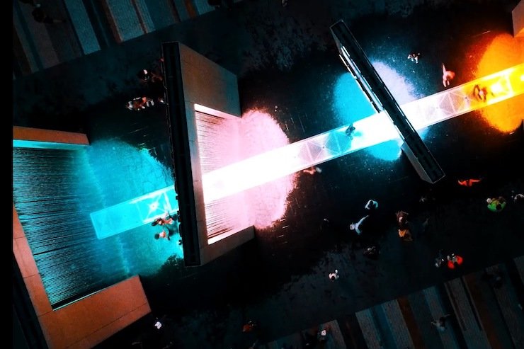 Центральним об'єктом є світловий фонтан, який складається з п’яти арок.