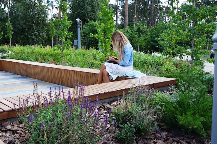 Біля входу висадили клени, березу, магнолію, сакуру, кущову вишню, сливи. Для квітників використали багатолітні квіти. Також біля заїзду до парку залили асфальтом майже 2000 квадратних метрів майданчика для паркування автомобілів.