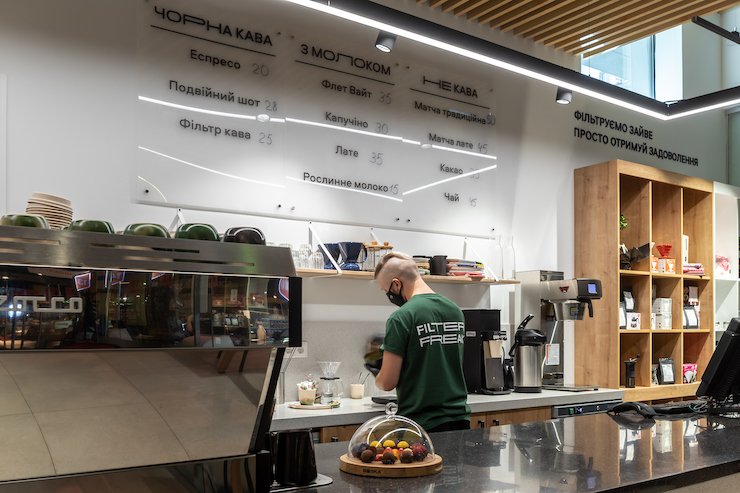 Концепцію кав’ярень при супермаркетах розробляли навколо простоти: коротке і зрозуміле меню, лаконічна комунікація з баристом тощо.