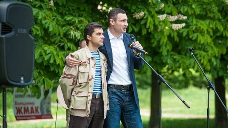 2014 року Володимир Жмак (ліворуч) балотувався до Київради від УДАРу, Блоку Петра Порошенка та Третьої української республіки, але програв вибори Олександру Пабату. Фото: nefterynok.info