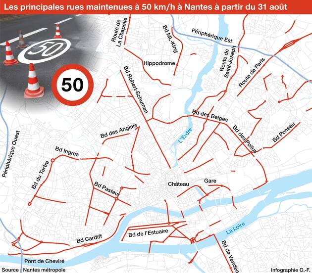 Загалом обмеження швидкості до 30 км/год поширюється на 600 кілометрів вулиць Нанту й набуде чинності 31 серпня.