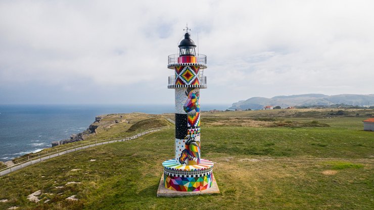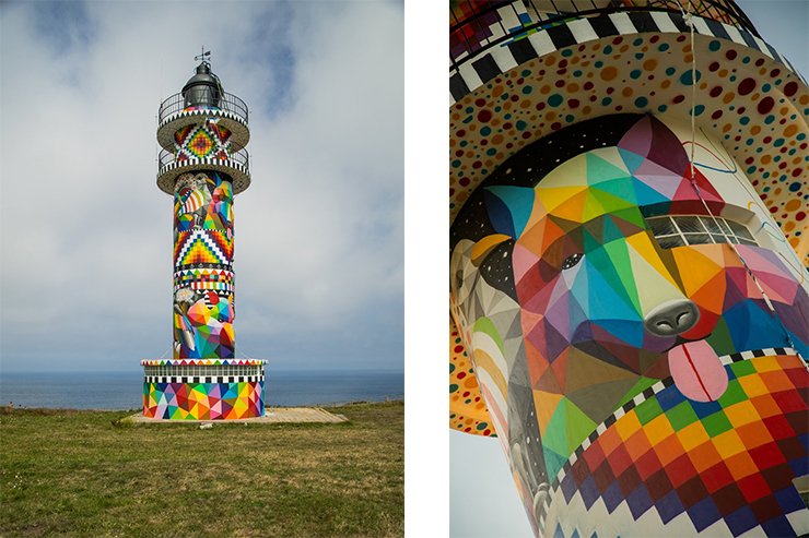 Іспанський художник Окуда Сан Мігель розмалював строкатим геометричним муралом старовинний маяк на мисі Ахо, що на північному узбережжі Атлантичного океану, повідомляє The Guardian.