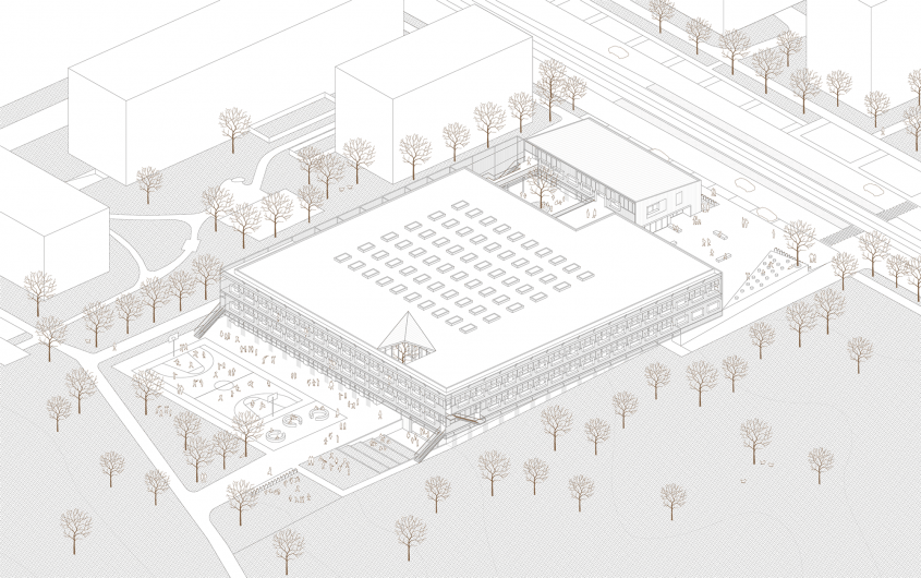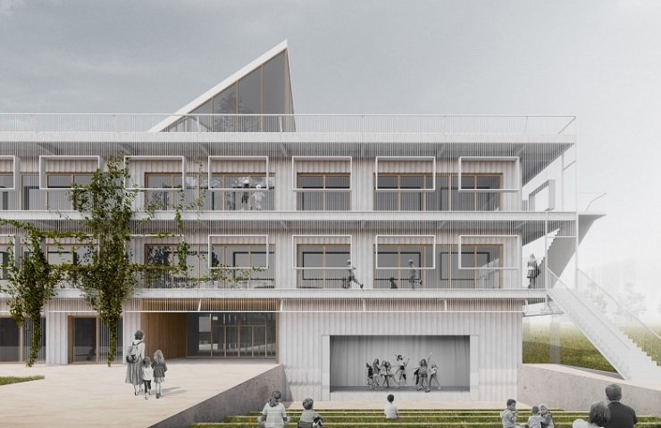Харківське архітектурне бюро Drozdov & Partners розробило концепт школи та дитячого садка у передмісті Праги. Проєкт розміщений на сайті компанії.