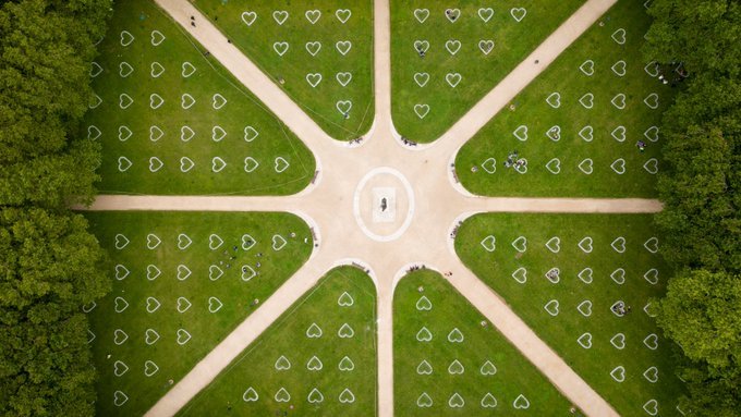 Проте це лише один з прикладів нового візуального коду, який починає охоплювати всі міста світу. Наприклад, у Бристолі (Велика Британія) на траві з’являються позначки у вигляді сердець, які нагадують про дистанціювання. В Нью-Йорку (США) білими колами усіяні громадські парки, а намальовані контури з’являються на тротуарах багатьох індійських міст.