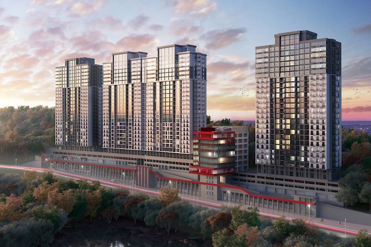 Три 22-поверхові будинки неподалік від Індустріального мосту почали будувати 2005 року. Будувала компанія «Київреконструкція», яка належала братам Леоніду та Дмитру Крючковим. Гроші за квартири виводили через Західінкомбанк, який збанкрутував під час кризи 2008 року.