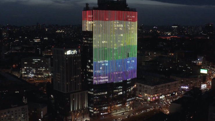На будівлю ТРЦ «Гулівер» транслюють 140-метровий ЛГБТ-прапор (відео)