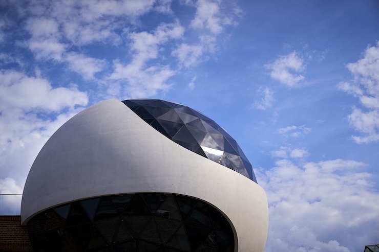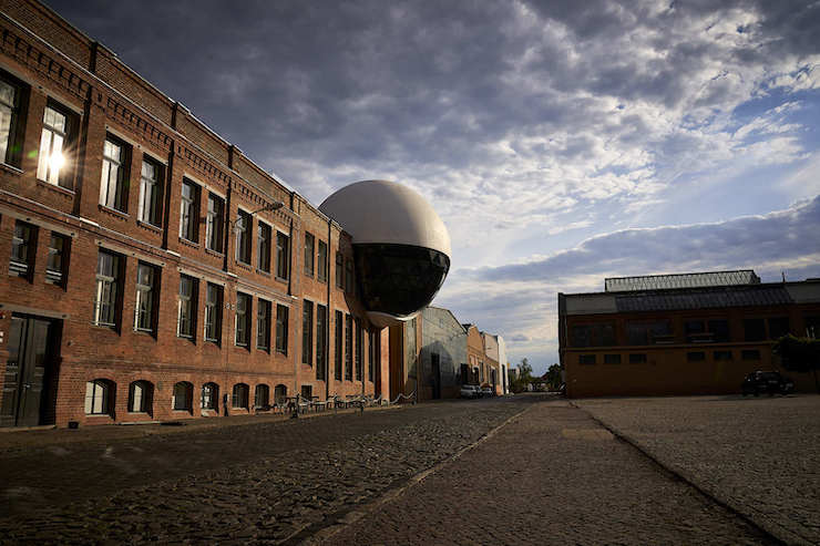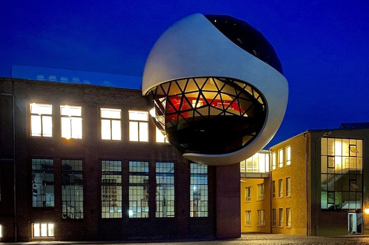 У німецькому Лейпцигу на будівлі машинобудівного заводу імені Кірова надбудували ресторан у вигляді сфери. Проєкт розробив нині покійний бразильський архітектор Оскар Німеєр, повідомляє ArchDaily.