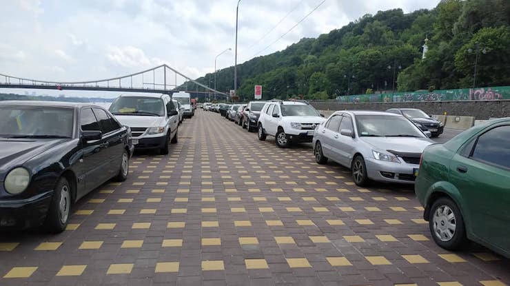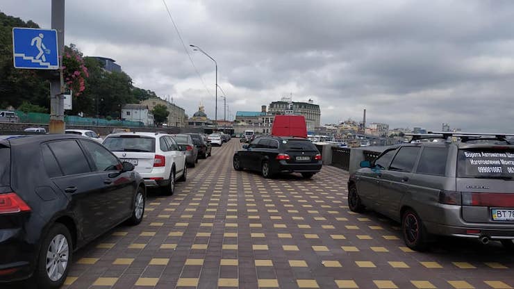 На набережній в Києві тротуар відгородили бетонними блоками: фото до і після