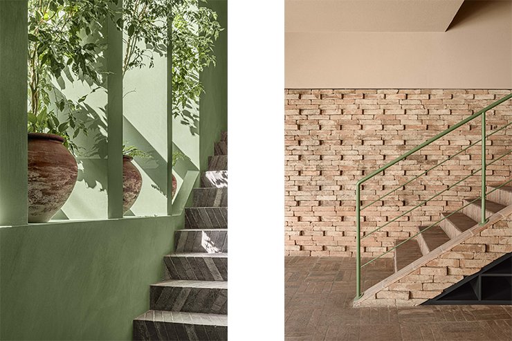 На другому поверсі підлога стає дзеркальним відображенням стелі на першому. Уздовж вікон облаштували м’яку посадку. Яскравим акцентом поверху є насичено-зелений колір приміщення зі згладженими кутами.