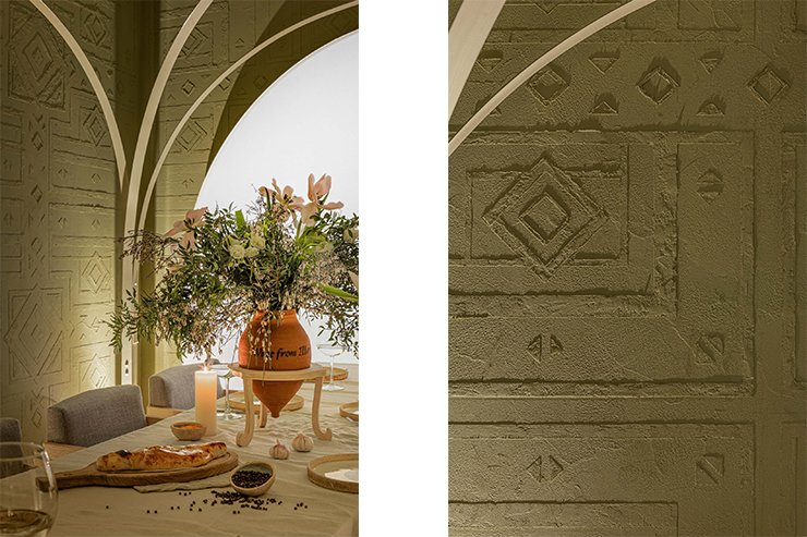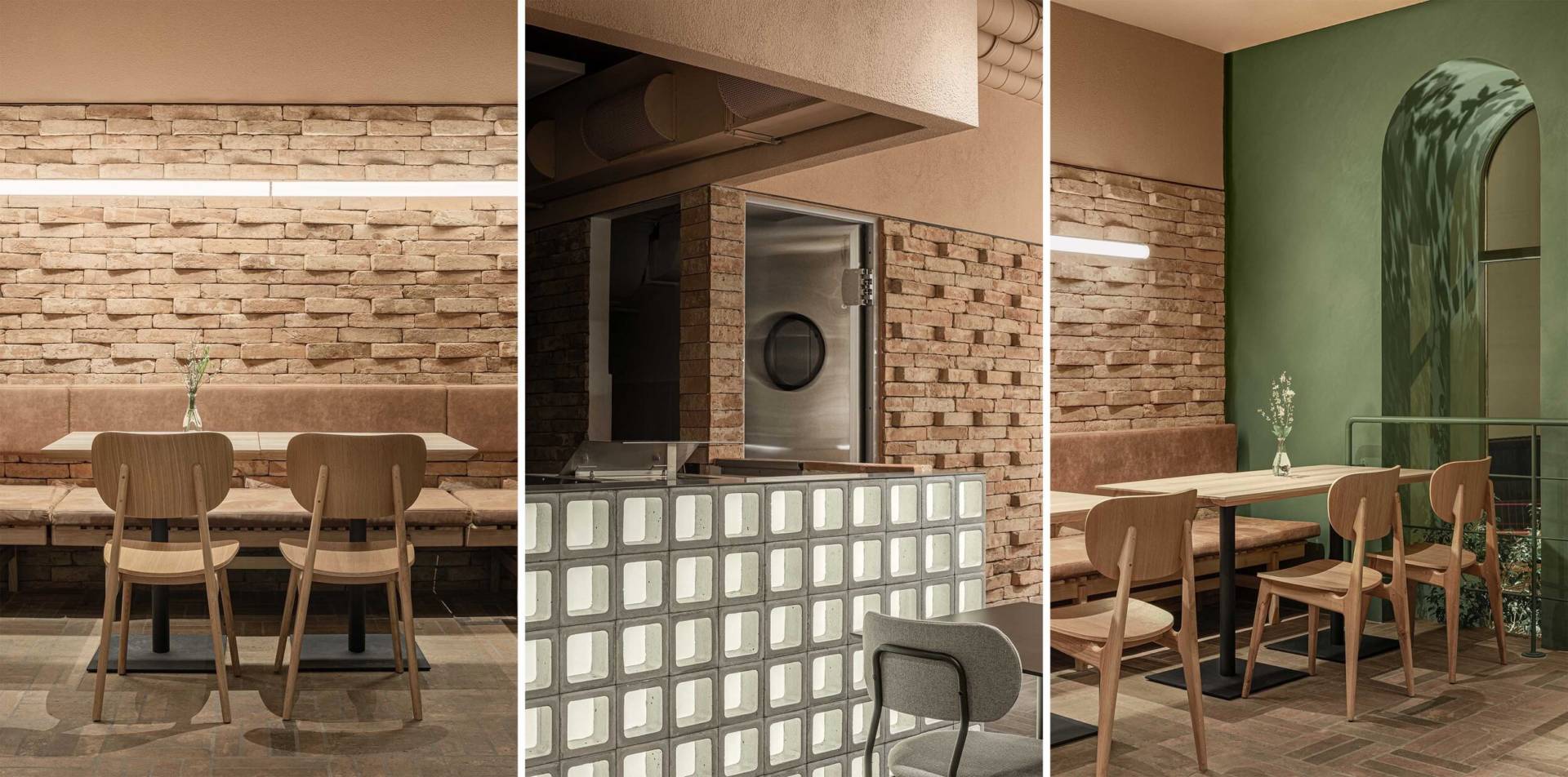 Цегляне мурування і кераміка в інтер’єрі ресторану грузинської кухні за проєктом Balbek Bureau (фото)