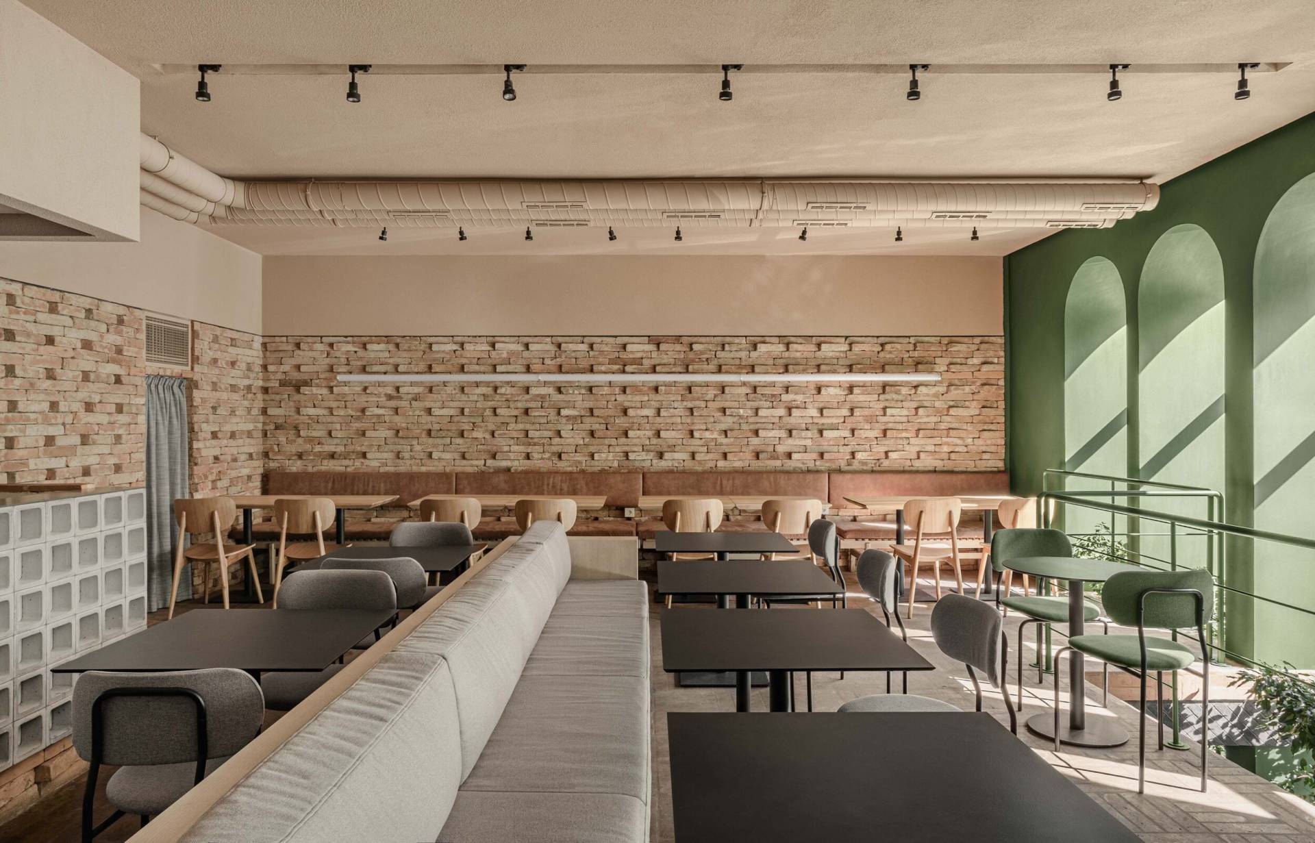 Перший поверх – динамічний простір, облаштований для активного потоку гостей. Тут переважає тверда посадка для швидких ланчів, перекусів або бізнес-зустрічей.