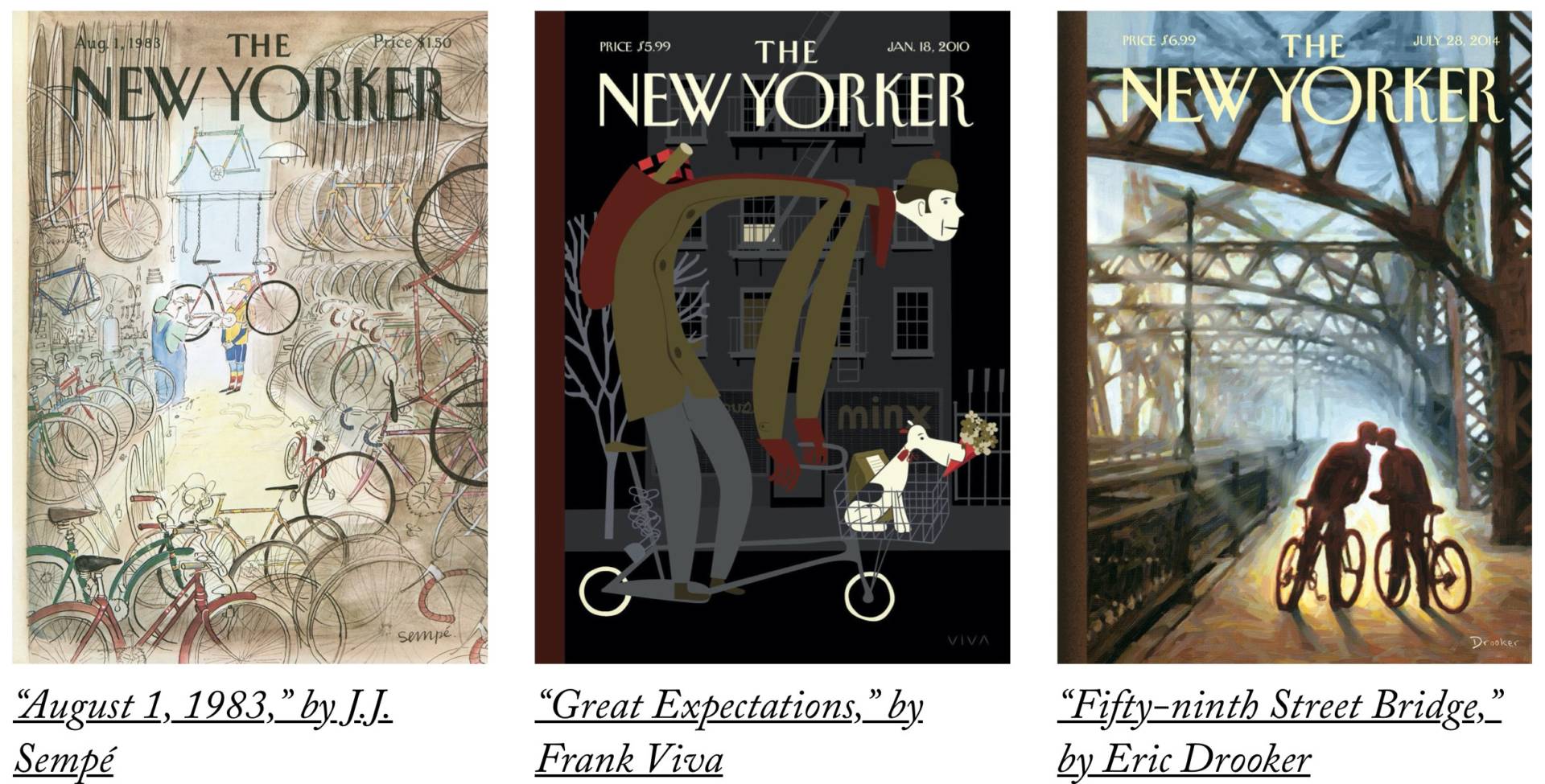 Інші обкладинки журналу New Yorker з велосипедами: 1983, 2010 та 2014 роки
