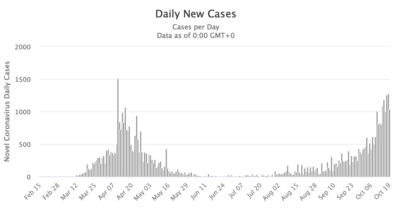 За графіком worldometers.info, з початку осені в Ірландії спостерігається інтенсивний ріст кількості захворювань після значного спаду влітку