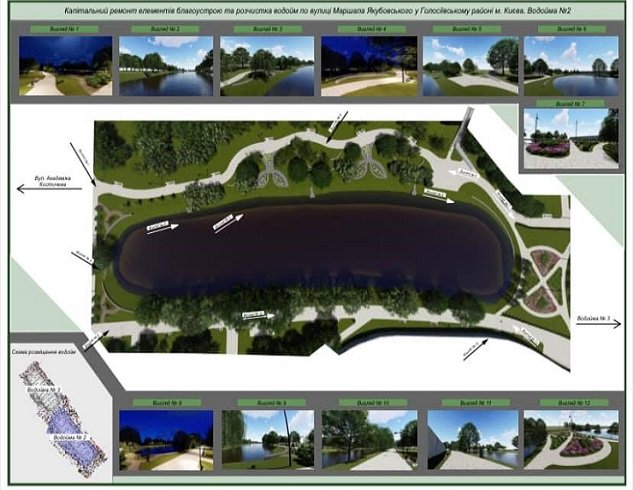 Також біля озер облаштують спеціальні місця для годівлі качок та нову геопластичну терасу для відпочинку, освітлення та навігаційну систему з використанням тактильної плитки.