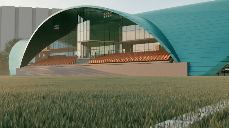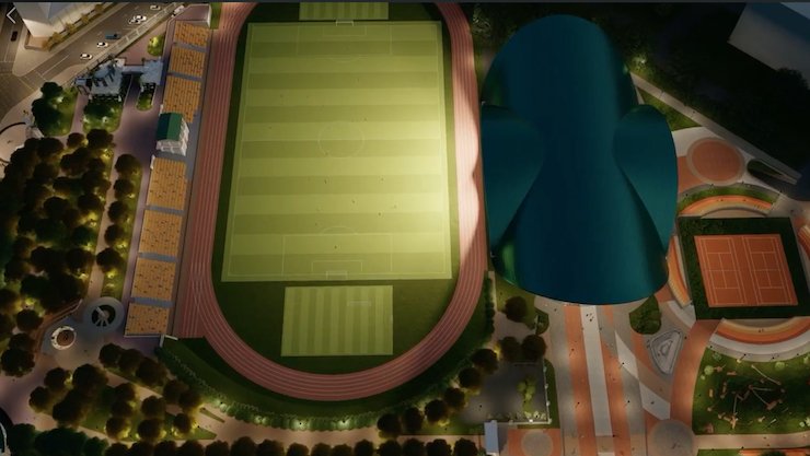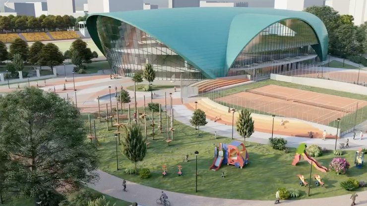 На території стадіону збудують велику скляну споруду, в якій, судячи з відео з 3D-моделюванням, буде розташовано аквазону з басейном, спортзали та льодову арену.