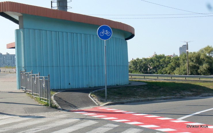 Нещодавно киянин Віктор Крук публікував фото двосторонньої велодоріжки на Північному мосту, яка є частиною веломаршруту «Троєщина-Центр». Доріжка оминає зупинку громадського транспорту і, на думку киянина, стіна зупинки не дозволяє бачити, хто рухається назустріч.