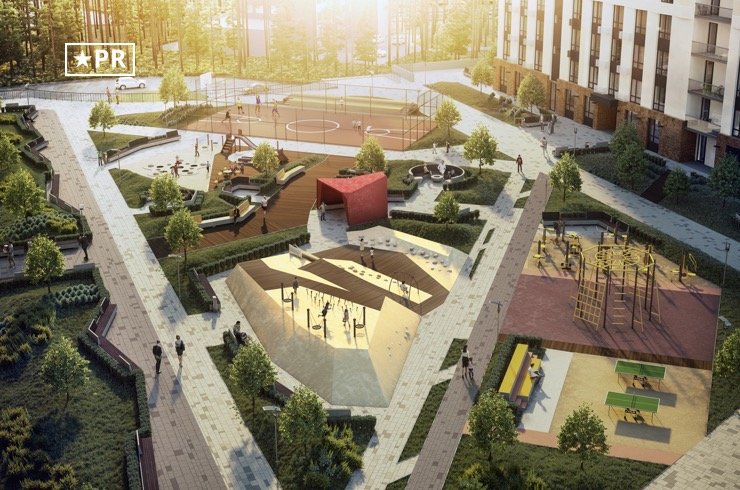 Для найменших мешканців на території комплексу облаштують ігровий майданчик, також тут передбачена окрема зона для занять спортом і спеціально обладнане місце для барбекю.