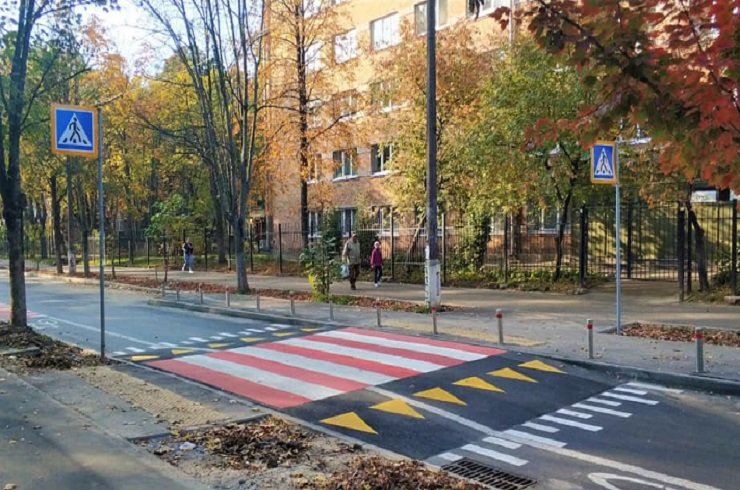 Біля школи і гуртожитку для безпеки пішоходів влаштували підвищений пішохідний перехід, тактильні елементи, притротуарні острівці безпеки (антикишені), а на перехресті з вулицею Герої Севастополя влаштували два острівці безпеки.