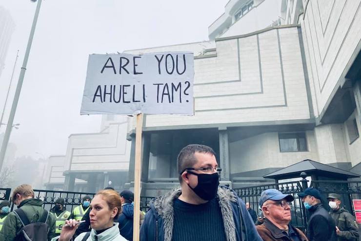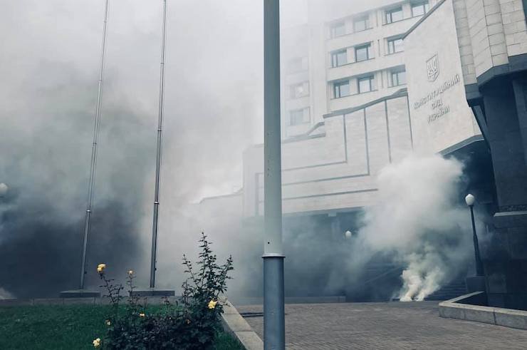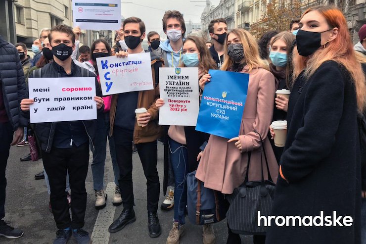 Вранці 30 жовтня біля будівля Конституційного суду на вулиці Жилянській почався мітинг проти рішення КСУ, яке скасовує кримінальну відповідальність за недостовірне декларування й обмежує функції Нацагентства з запобігання корупції (НАЗК). Учасники палять димові шашки та пропонують суддям «поїхати до Ростова».