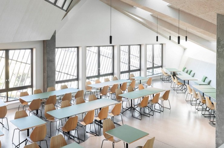 Менші за розміром і більш традиційні, закриті робочі кабінети знаходяться далеко від ділянок, що піддаються впливу сонця, що знижує перегрів і залежність від штучного охолодження. Енергоефективні офісні будівлі були розроблені у відповідь на кліматичну кризу, щоб запропонувати «стійку модель робочого простору майбутнього».