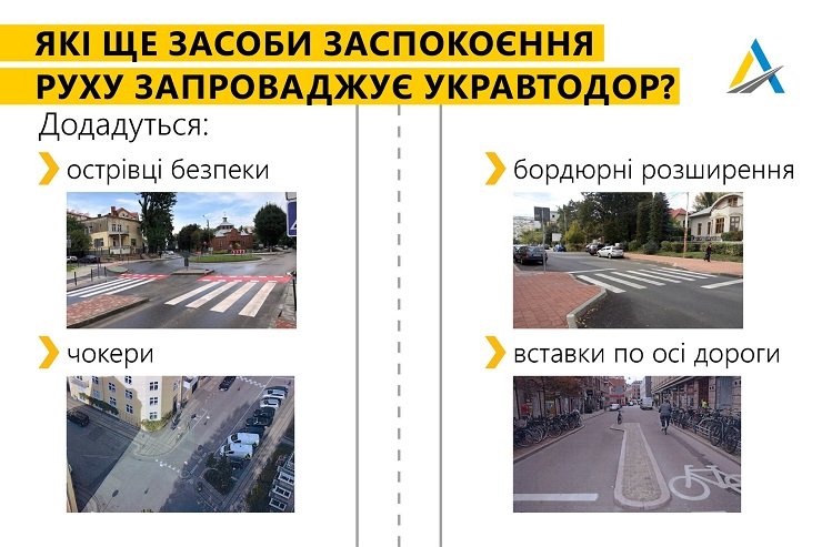 Раніше офіційно дозволеними були кільцеві розв’язки, шумові смуги, піднесені пішохідні переходи, звуження смуг руху, напрямні острівці та «лежачі поліцейські». Тепер до них додадуться: острівці безпеки, бордюрні розширення, чокери, розділювальні смуги.