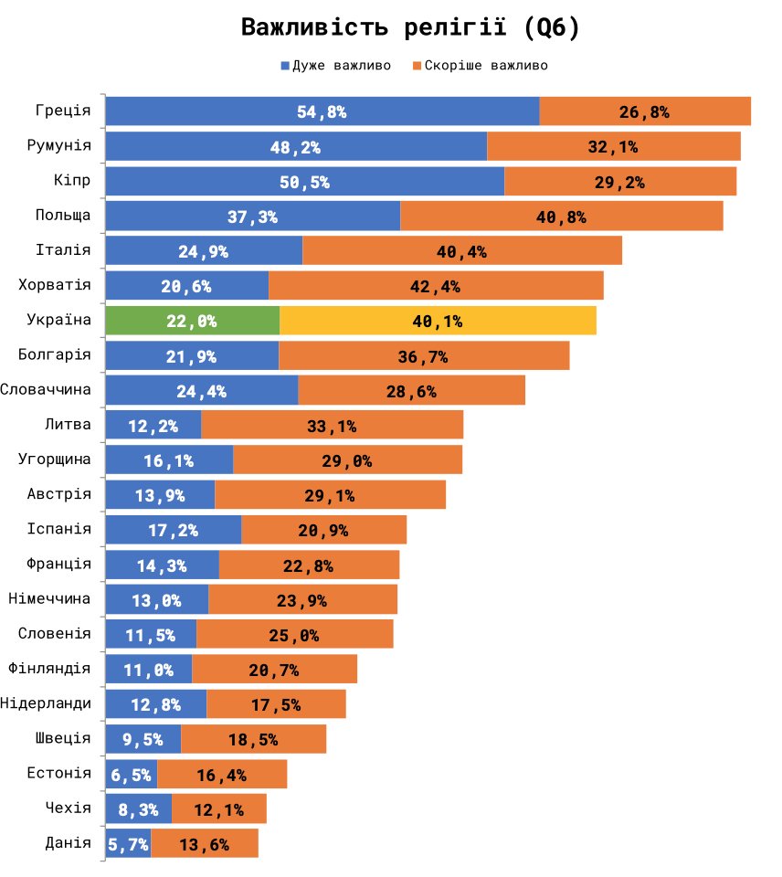 Україна залишається найближчою до групи православних європейських країн, таких як Болгарія та Румунія. Разом з тим Україна випереджає ці країни за багатьма показниками секулярно-раціональних цінностей і цінностей самовираження, зазначають автори дослідження.