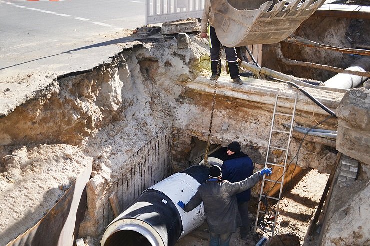 На розі вулиць Саксаганського та Шота Руставелі замінюють проблемну тепломагістраль, яку експлуатують із 1972 року. Наразі триває перший етап модернізації теплотраси діаметром 700 мм, повідомляє КП «Київтеплоенерго».